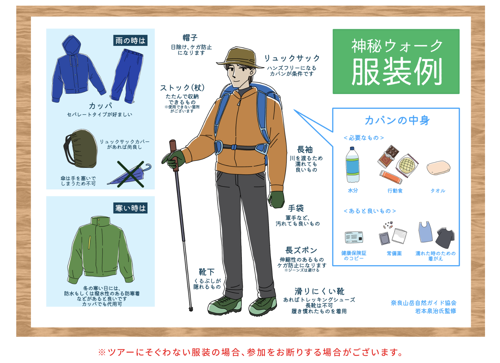 必要に応じて着替え等をご用意ください。